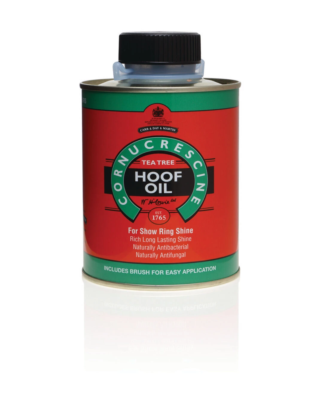Das Carr & Day & Martin Cornucrescine Teebaum Huföl ist eine schützende Pflege für einen langanhaltenden Showglanz. Die moderne Alternative zu traditionellen Hufölen. Verleiht dem Huf einen langanhaltenden Showglanz und pflegt diesen vorbeugend gegen Keim- und Pilzbildung. Dieses reichhaltige, klare und feine Huföl eignet sich für alle Huffarben. Enthält Teebaumöl mit antibakterieller und antimykotischer Wirkung. Inklusive Pinsel für ein leichtes Auftragen.
