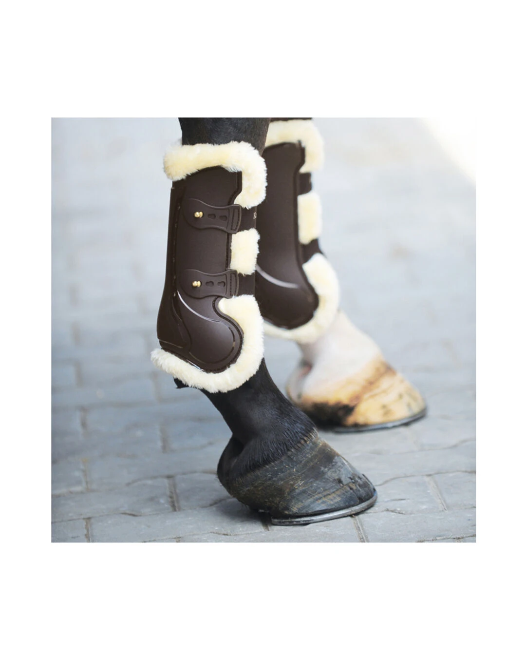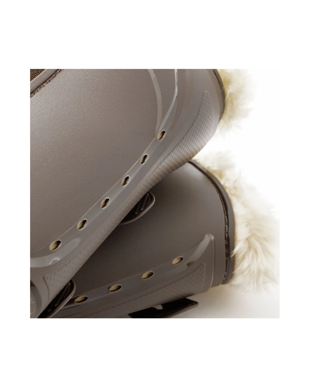 Die Hartschalen-Gamaschen Compete ’n Wool von Kavalkade haben eine schlagfeste Hartschale. Zwei elastische Stripes mit Knopfverschluss bieten sicheren Halt und ermöglichen ein optimales Anpassen an das Pferdebein.