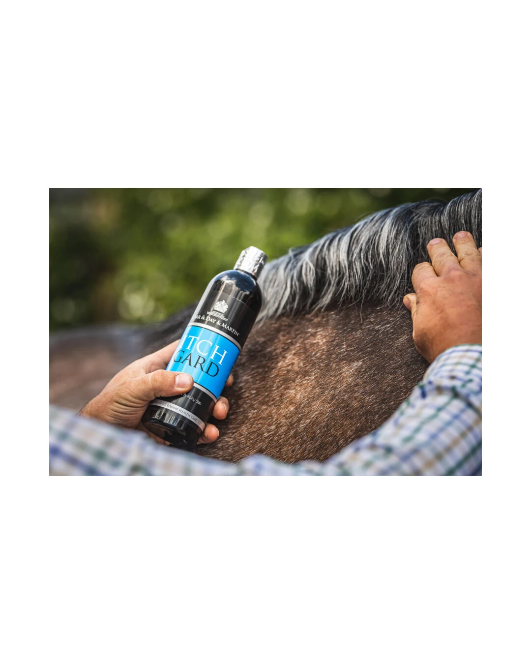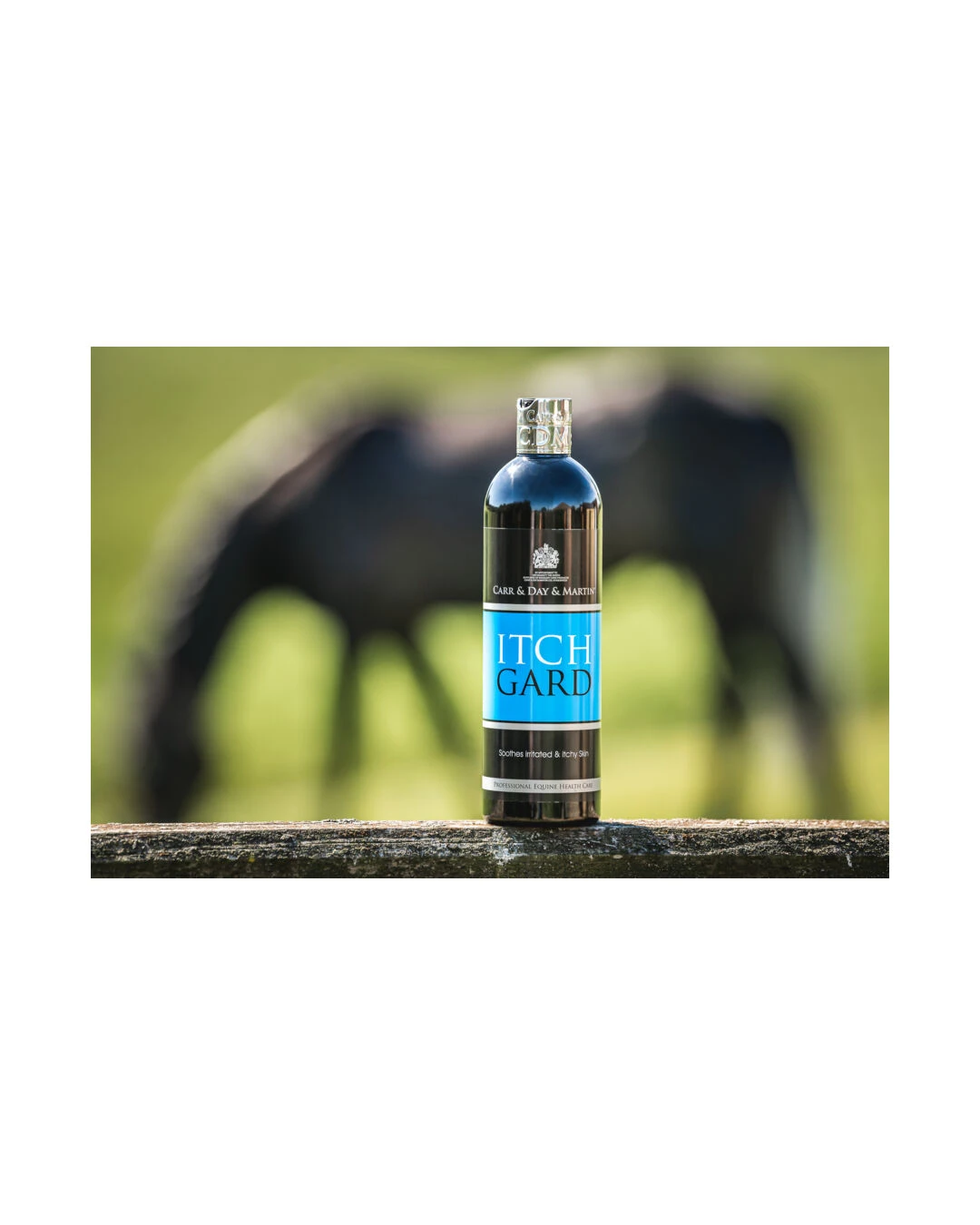 Das Carr & Day & Martin ItchGard enthĂ€lt pflanzliche Bestandteile wie Zitronengras, Extrakte aus Ringelblumen und Geranien oder auch Mentholöle tragen zur Beruhigung und KĂŒhlung gereizter Haut bei. Die nicht fettende Lotion eignet sich daher optimal bei Pferden, die unter Juckreiz leiden.