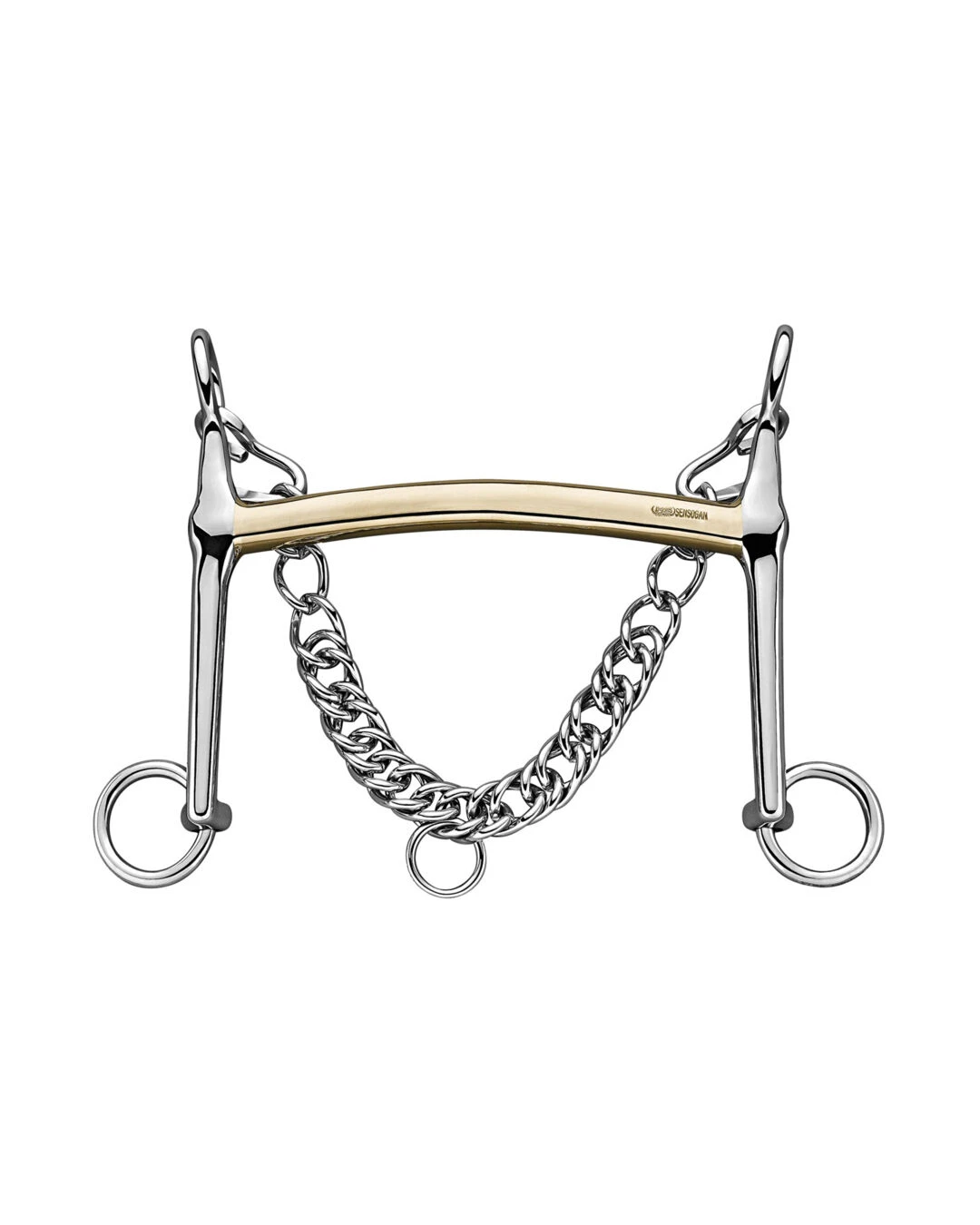 Stange ohne Zungenfreiheit, kein Kontakt zum empfindlichen Gaumen|leicht nach oben gebogen|stetiger, gleichmĂ€Ăiger Druck ĂŒber die gesamte Zungenbreite (Zungenmitte und ZungenrĂ€nder) und die unteren Laden|ideal fĂŒr Pferde mit wenig Platz im Maul