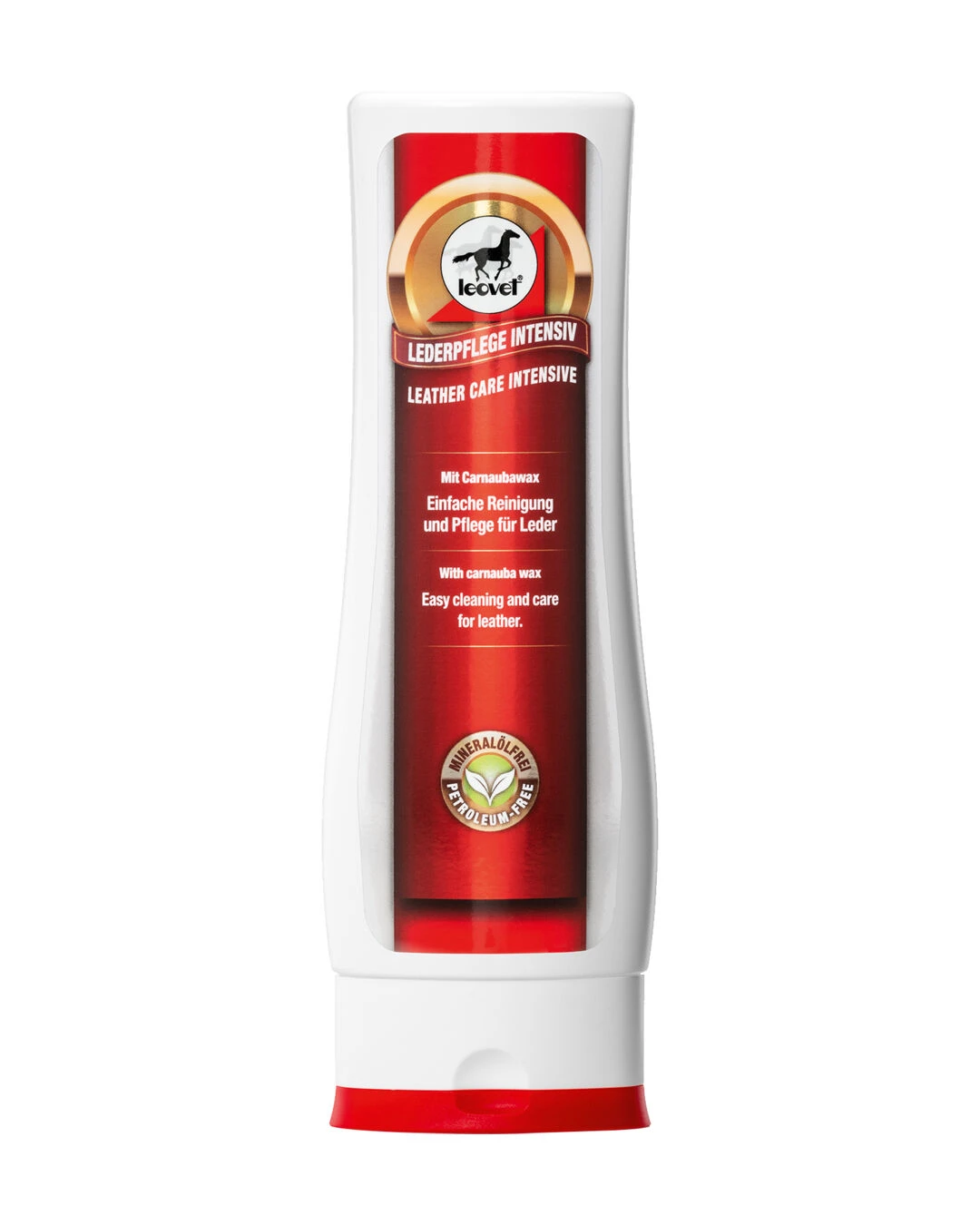 Die Lederpflege Intensiv von Leovet ist eine sanfte, mattglĂ€nzende Emulsion fĂŒr Glattleder, Reitstiefel und Schuhe.