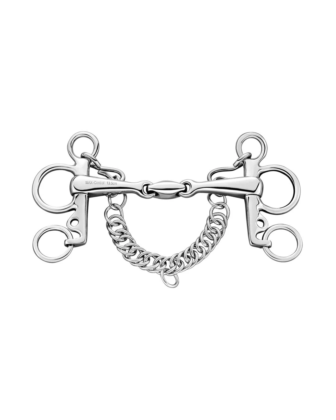 blockiert ab einem bestimmten Winkel und wirkt Ă€hnlich einer Stange|Stangenwirkung setzt erst ein, wenn das Pferd gegen die Hand geht oder stark wird|gezielte und effektive Hilfengebung durch Wirkung auf Zunge, Genick und Unterkiefer|die Hebelwirkung auf das Genick kann je nach Verschnallung variiert werden|wird hĂ€ufig mit Pelhamriemchen verwendet, fĂŒr höhere Ausbildungsstufen empfiehlt sich die Nutzung von 2 ZĂŒgelpaaren|Nutzung einer Kinnkettenunterlage zum Schutz des Unterkiefers wird empfohlen
