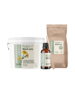 Die Relax-BioCare Pferdeerde Arnika unterstĂŒtzt die Regeneration nach dem Sport und eignet sich zur Pflege bei besonderer Beanspruchung der Pferdebeine. Die Pferdeerde Arnika wird eingesetzt als ein natĂŒrlicher, kĂŒhlender Umschlag zum Schutz und zur unterstĂŒtzenden Pflege bei Prellungen, Verstauchungen, Schwellungen und Beschwerden der GliedmaĂen. Wohltuend fĂŒr Sehnen und BĂ€nder nach der Belastung sowie bei Hautirritationen und Schwellungen durch Insektenstiche.