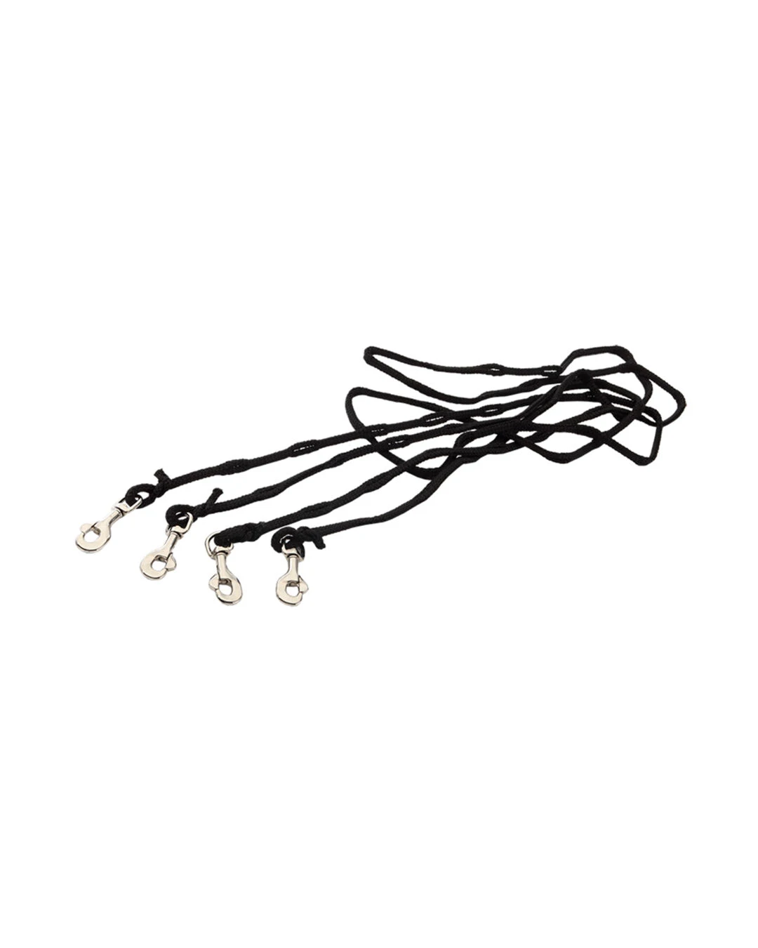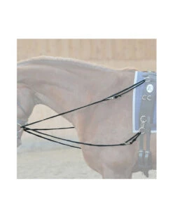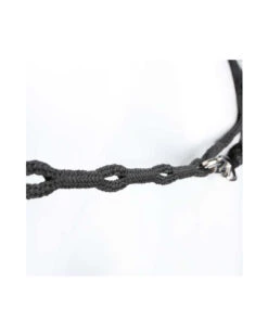 – praktische Hilfszügel aus einer Perlonschnur, mit Karabinerhaken und Schlaufen zur individuellen Längeneinstellung