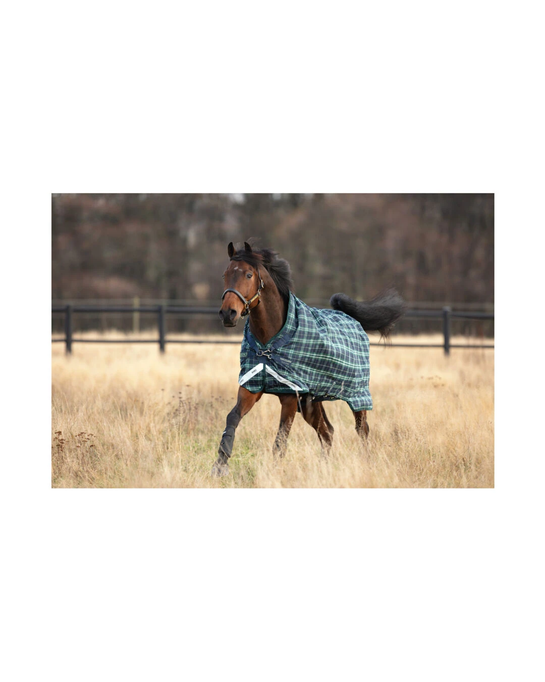 Die Rhino Wug Heavy VL mit dem originalen High-Neck Wug Design im anliegenden Schnitt, um Druckstellen am Widerrist zu vermeiden. Als Verschluss dient ein V-Vorderverschluss-System fĂŒr mehr Bewegungsfreiheit beim Grasen. Die einzigartige Barrieren-Technologie mit AuĂenmaterial aus 1000D Polypropylen schĂŒtzt die wasserdichte und atmungsaktive Schicht im Inneren der Decke. Mit Beinausschnitten, Reflektorstreifen, Kreuzgurten und einem glanzgebenden Innenfutter aus Polyester ist die Decke ebenfalls ausgestattet.