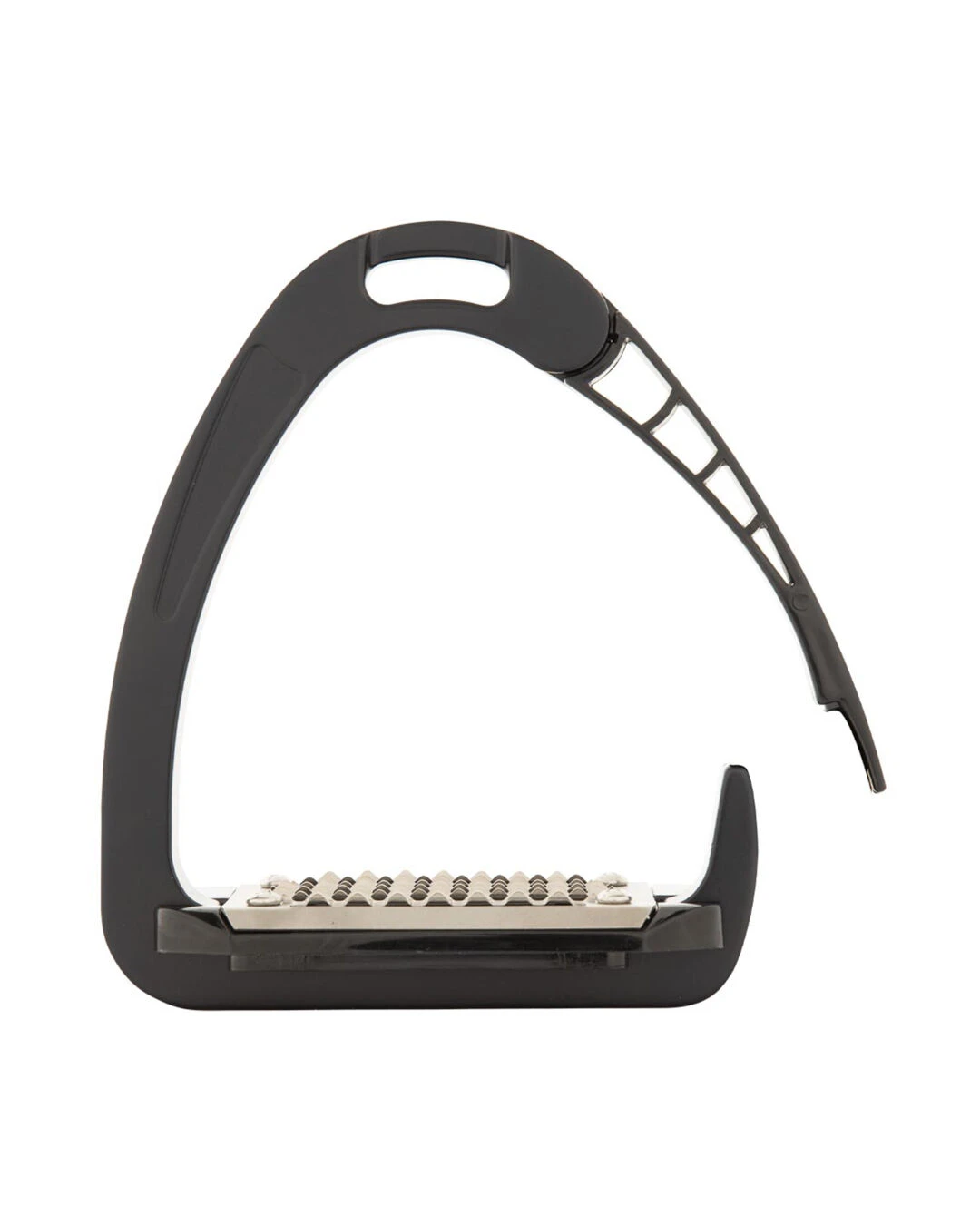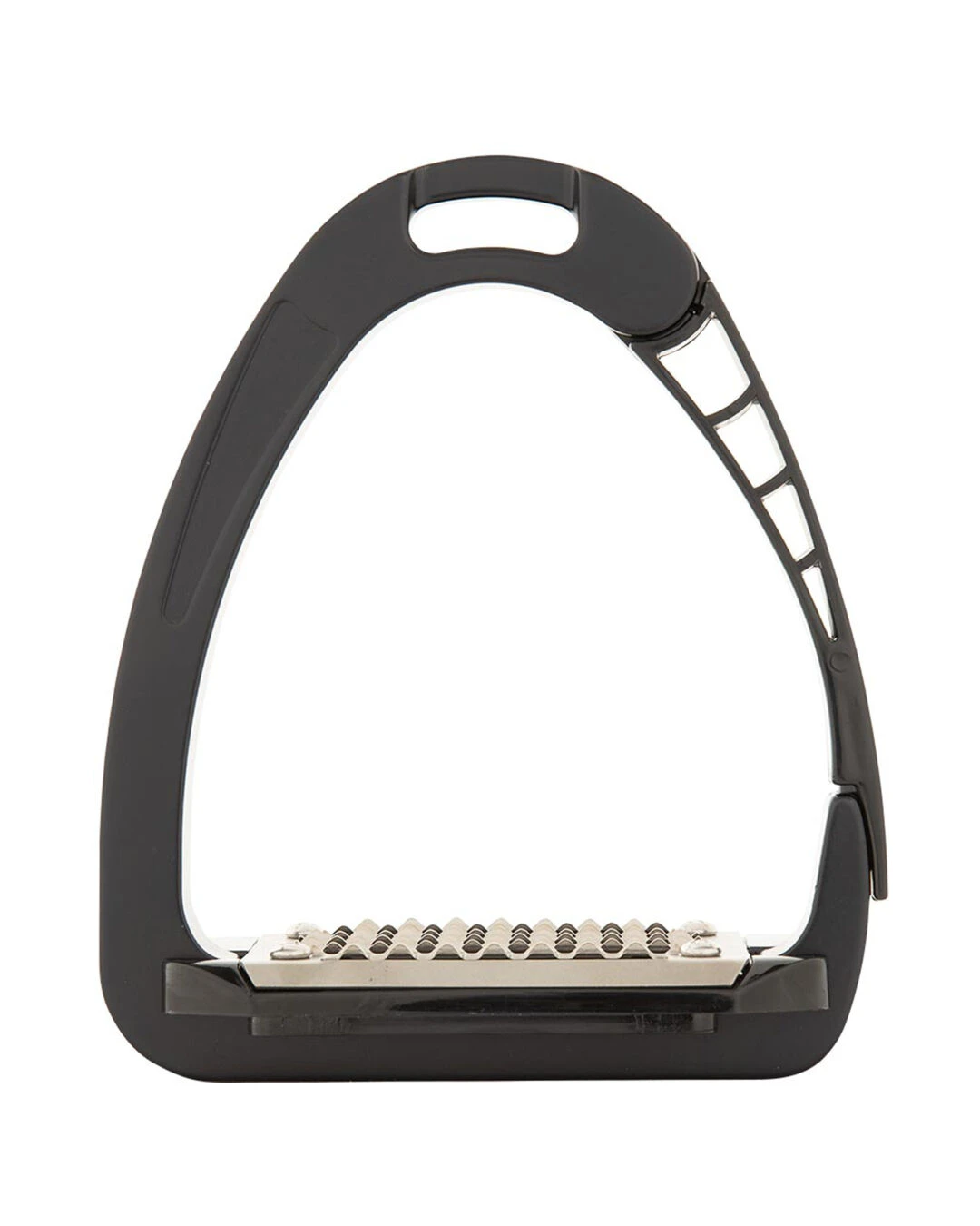 Die Sicherheitssteigbügel Arena AluPRO von Acavallo sind aus Aluminium und einem speziellen Polyamidmaterial gefertigt. Dank dieses Polyamidmaterials hat der Steigbügel eine federnde Konstruktion, wodurch eine deutliche Entlastung der Fußsohlen, Knöchel, Knie und Hüften entsteht. Der Bügel ist mit einem Sicherheitsmechanismus mit Scharnier und einem Durchrutschschutz ausgerüstet. Das Gewicht des Reiters sorgt dafür, dass sich der Bügel bei einem Sturz öffnet, so bleibt der Fuß nicht im Bügel hängen. Der Durchrutschschutz gewährleistet, dass sich der Bügel nur öffnet, wenn dies wirklich notwendig ist. Der Sperr- und Freigabemechanismus lässt sich nach dem Auslösen mit einem Klick wieder einrasten. Preis pro Paar.