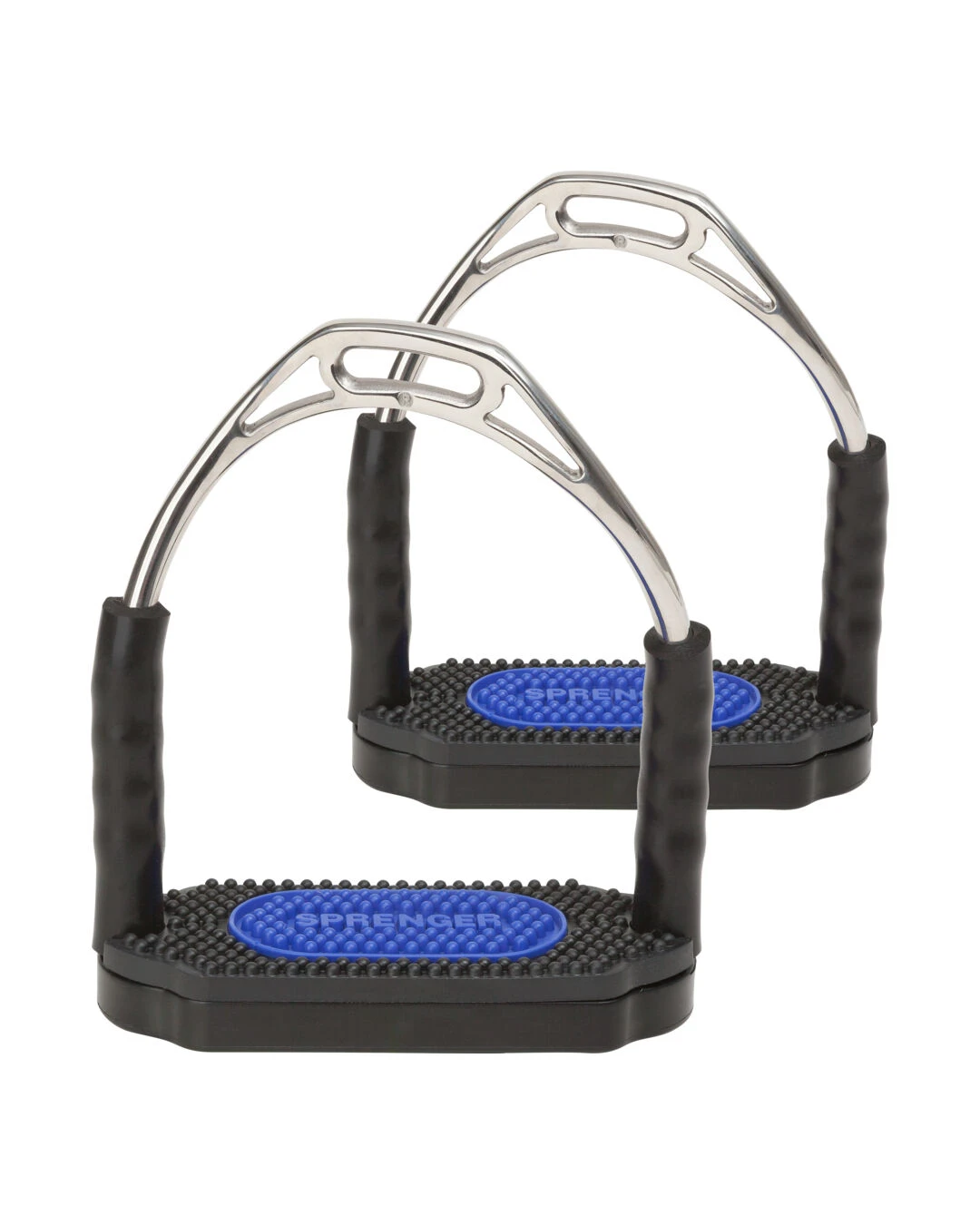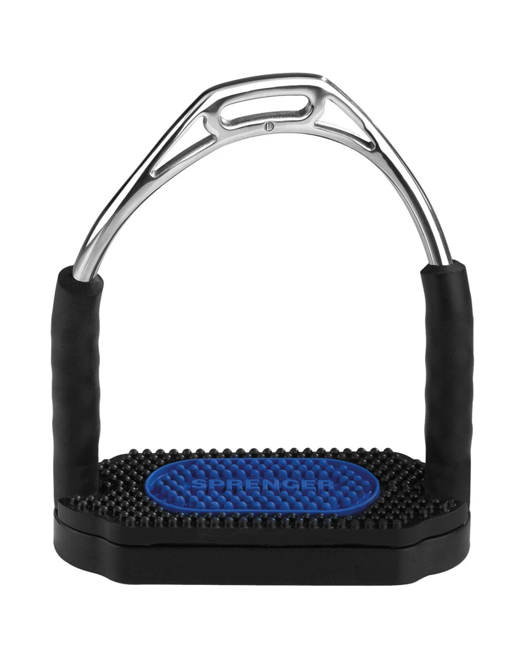 Der Sicherheitssteigbügel Bow Balance von Sprenger bietet alle Eigenschaften, um dich im Sattel ideal zu unterstützen. Er ist nicht nur optimal ausbalanciert, sondern auch gebogen geformt. So liegt er noch dichter am Pferd, erleichtert dir das Aufnehmen des Bügels und macht es dir noch leichter, das Pferd mit dem Schenkel sanft einzurahmen. Und wenn es doch zu einem Sturz kommt, dann erleichtert das bewährte System-4-Gelenk die Freigabe deines Fußes. Es reduziert die Gefahr, im Steigbügel hängenzubleiben und beugt so Verletzungen vor. Das Gelenk bietet auch eine einzigartige Flexibilität: Es lässt deine natürlich-federnde Fußbewegung beim Reiten dynamisch zu – bietet aber gleichzeitig genügend Halt. Zusätzlich entlastet es durch seine stoßdämpfenden Eigenschaften deine Gelenke, Bänder und Sehnen. Die extra breite Trittfläche mit zwei verschiedenen Gummihärten sorgt für zusätzlichen Komfort.