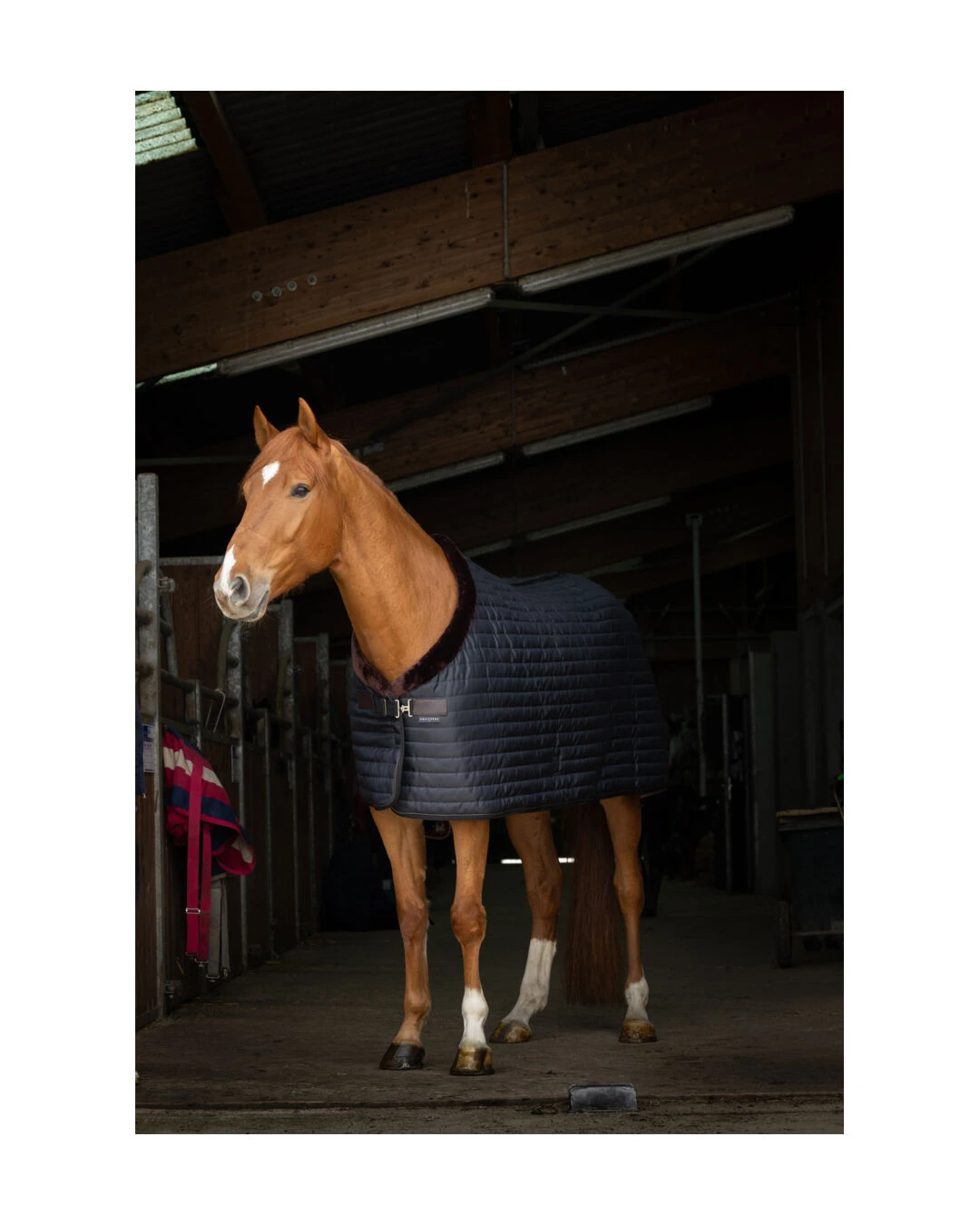 Diese schöne Stalldecke eignet sich besonders fĂŒr kĂŒhlere Tage. Der Schalkragen aus synthetischem Lammfell beugt wirkungsvoll Scheuerstellen in diesem empfindlichen Bereich vor. Die AuĂenseite der Stalldecke ist aus einem glatten gesteppten Polyestergewebe gefertigt, an dem SpĂ€ne und Stroh nicht hĂ€ngen bleiben. Die Decke besticht auch durch hohen Tragekomfort, dank des synthetischen Lammfells als Innenfutter.