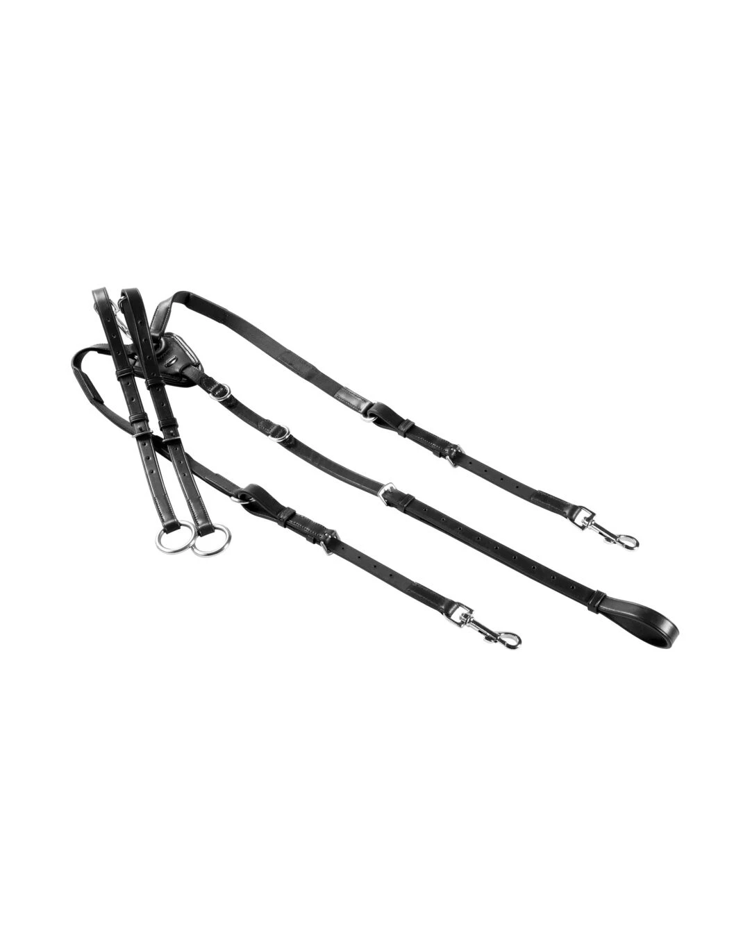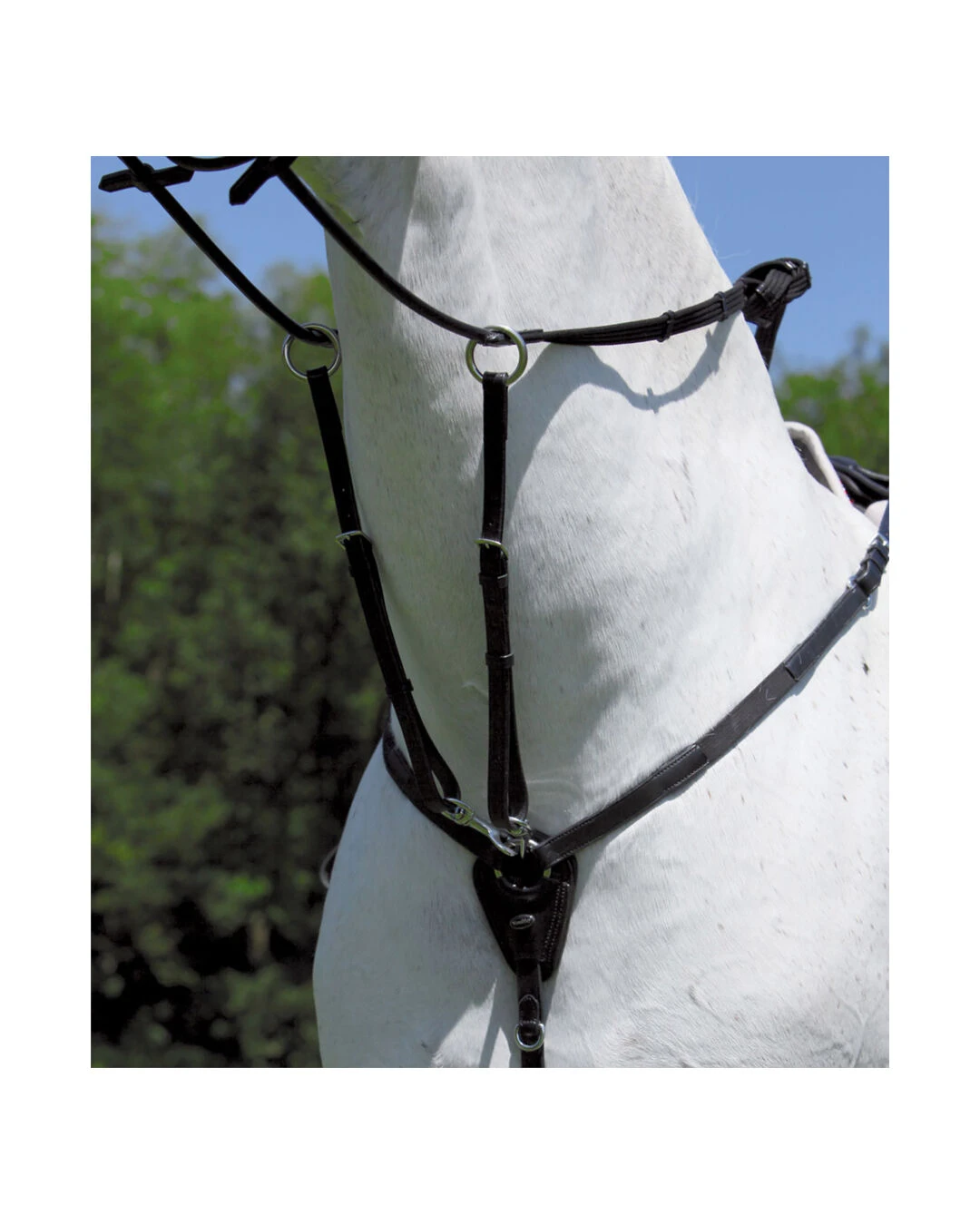 Vorderzeug aus robustem Leder. Mit Elastik-Einsatz am Halsteil und abnehmbaren Martingalgabeln.