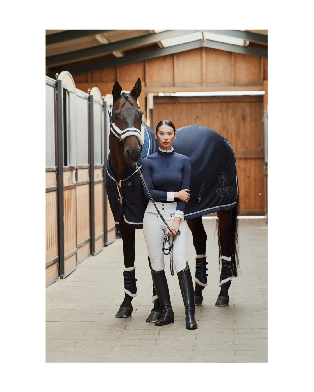 Die Eskadron Transportdecke DURA CRYSTAL PLATINUM PURE 23 ist die perfekte Wahl fĂŒr jeden Pferdebesitzer, der auf der Suche nach einer hochwertigen und langlebigen Transportdecke ist. Das stabile Dura-Obermaterial und die Fleece-Unterseite machen diese Decke besonders pflegeleicht und unempfindlich. Das Highlight dieser Decke ist der Glossy Kragen mit eingelegten Kristallsteinen, der auf beiden Seiten angebracht ist. Der Platinum Pure Emblem auf der einen Seite verleiht der Decke einen edlen Look. Die breite Glossy-Einfassung wird durch eine Lurex-Kordel zusĂ€tzlich aufgewertet. Die Doppelbrustverschnallung mit Klettfixierung sorgt fĂŒr eine sichere Passform. Zudem hat die Decke eine abnehmbare Kreuzbegurtung und einen integrierten Schweifriemen.