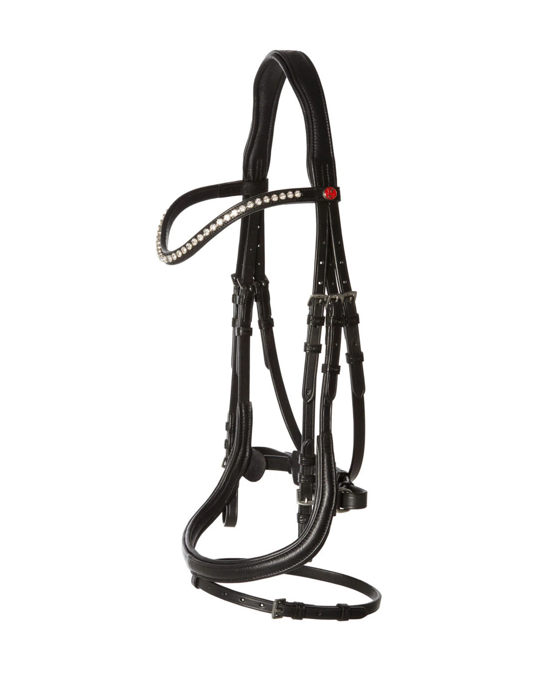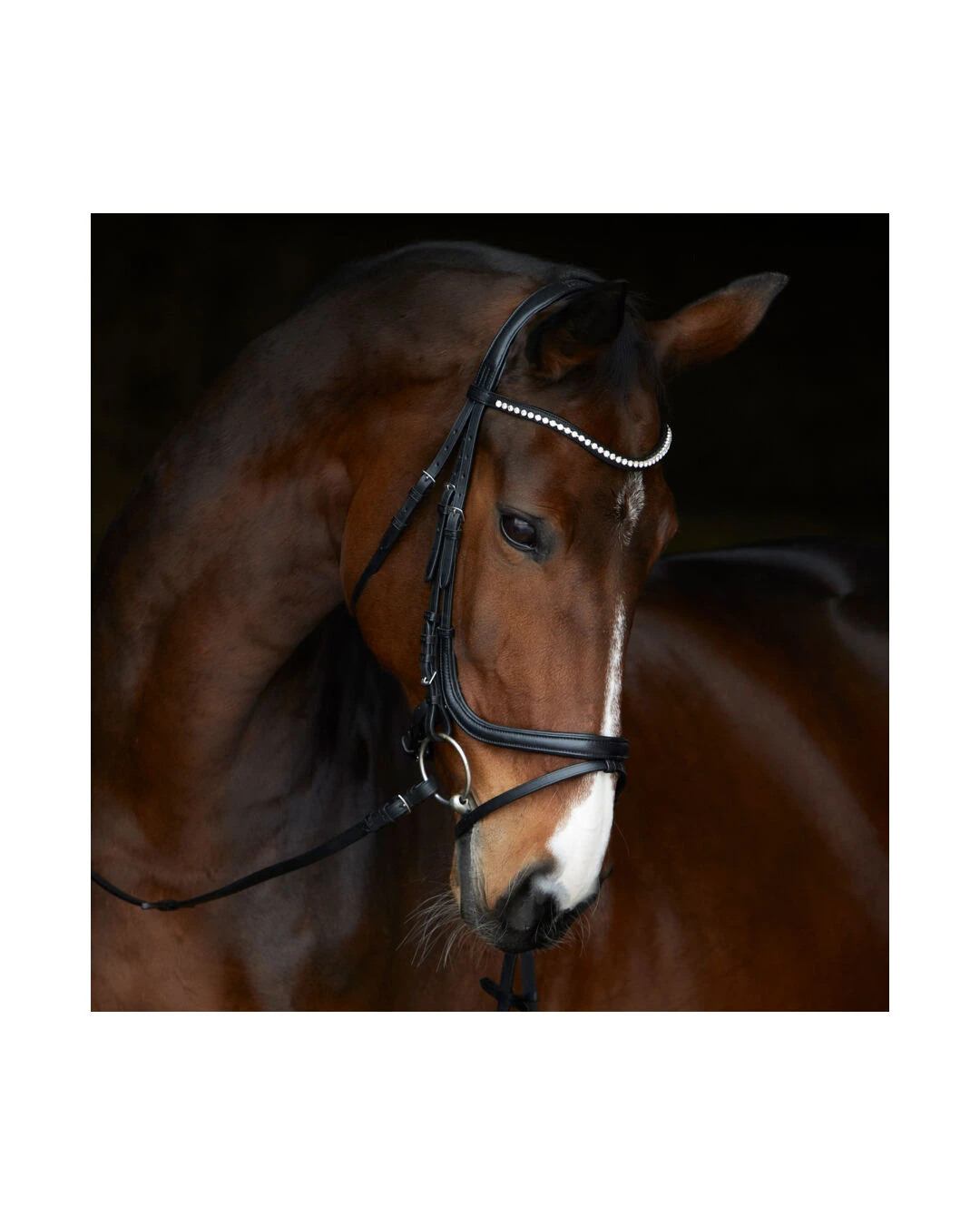 Kieffer Trensenzaum UltrasoftÂź Stella ĂŒberzeugt nicht nur durch ihre filigrane Gestaltung, sondern auch durch ihr Professional-GenickstĂŒck mit Ohrenausschnitt und dem anatomisch abgerundete Reithalfter, welches Nervenbahnen und BlutgefĂ€Ăe geschickt umgeht. SelbstverstĂ€ndlich weich gepolstert. Die Trense ist aus geschmeidigem und weichen QualitĂ€tsleder gefertigt. Der filigrane und elegante Look wird durch das geschwungene Stirnband mit funkelnden Kristallen abgerundet.