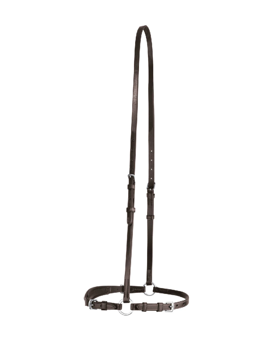 Das hannoveranisches Reithalfter X-Line von Waldhausen hat einen verstellbaren, weich gepolsterten Nasenriemen, fĂŒr die prĂ€zise Einstellung.