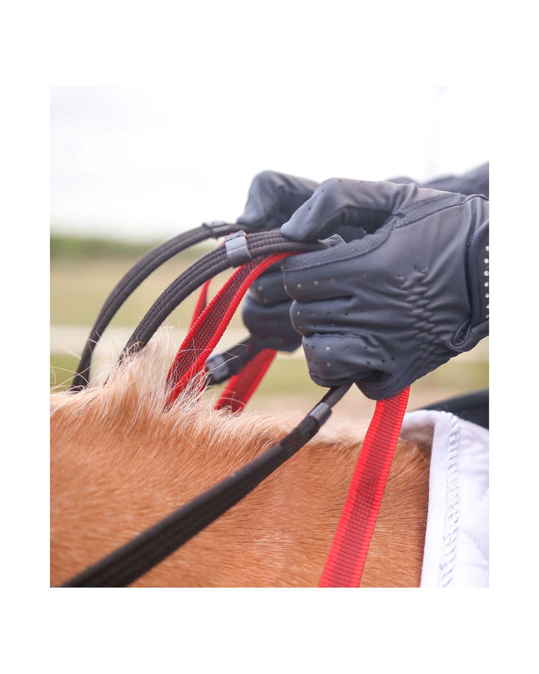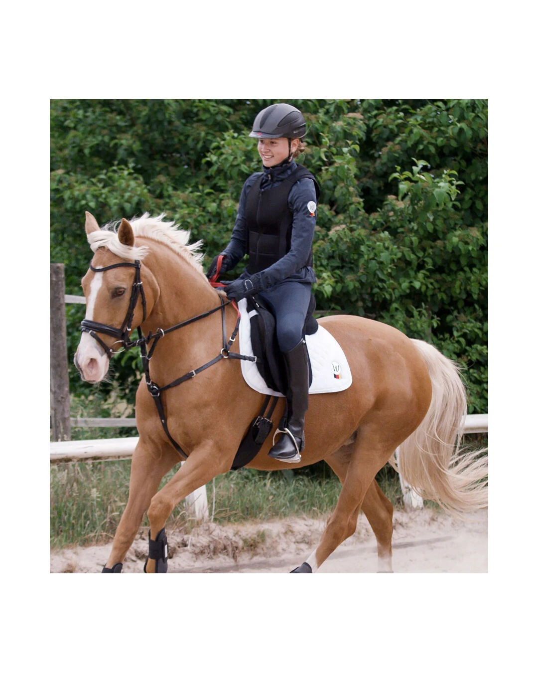 Das neue Vorderzeug mit Sicherheitszügel von Waldhausen ist vielseitig einsetzbar. Dem Anfänger an der Longe dient er zur Übung der Zügelhaltung, der Übergang von der Longe zum freien Reiten wird erleichtert. Dem Anfänger beim freien Reiten bietet er zusätzliche Sicherheit. Des Weiteren kann die Kombination bei jungen oder schwer kontrollierbaren Pferden, die zu überraschenden Bewegungen neigen, eingesetzt werden, um den Reiter zu unterstützen. Der Sicherheitszügel gibt dem Reiter bei Bedarf Halt und wirkt durch die Verbindung mit dem Vorderzeug auf die Brust des Pferdes, um so bei der Wiederherstellung der Kontrolle über das Pferd beizutragen.