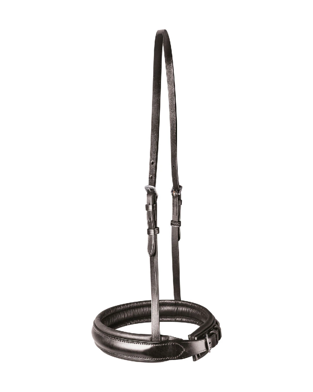 Das englische X-Line Reithalfter von Waldhausen hat ein sehr weiches Nasenband und ist seitlich schmaler geschnitten fĂŒr mehr Platz fĂŒr den Gebissring.