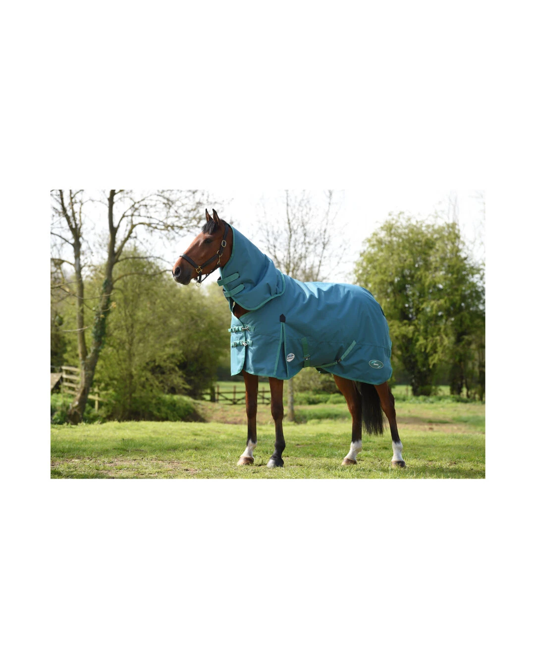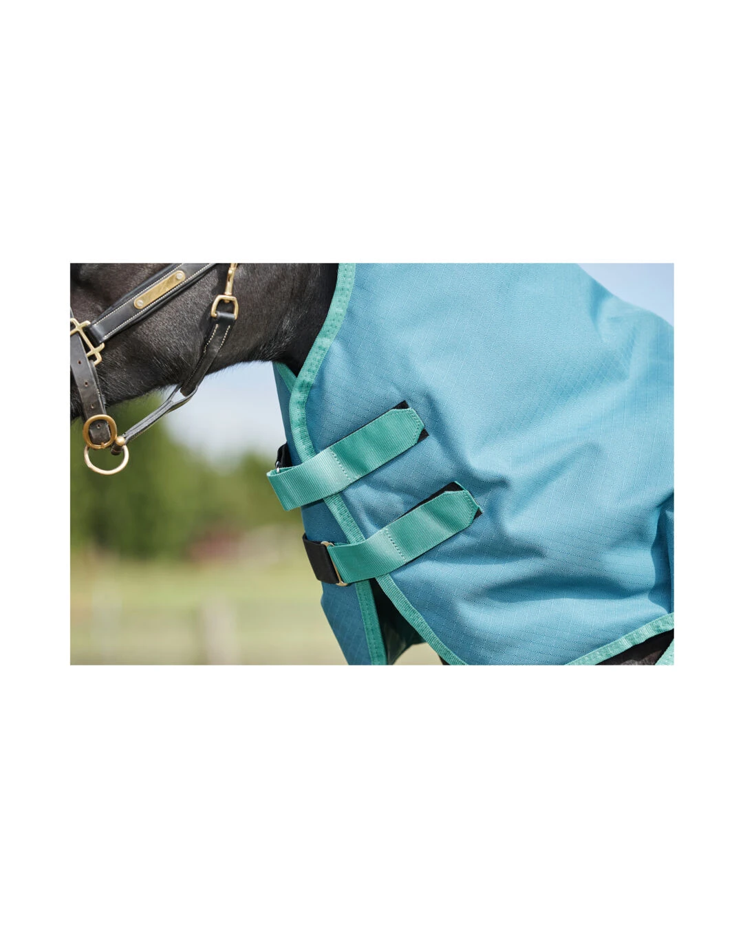 Die Decke ist kompatibel mit dem WeatherBeeta Liner-System, damit bleibst du flexibel und kannst je nach Jahreszeit eine der separat erhĂ€ltlichen Unterdecken damit kombinieren. Das PCR-Futter ist 150 Denier stark und besteht aus einer Diamantbindung mit 50 g Polyfill. Die Detach-A-Neck-Reihe von WeatherBeeta beinhaltet, dass du das mitgelieferte Halsteil nach Bedarf ganz unkompliziert abnehmen kannst. FĂŒr mehr Komfort sorgen die integrierte Gehfalte und die vielen individuellen Möglichkeiten, um die Decke optimal an den Pferdekörper anzupassen. Dazu gehören die lĂ€ngenverstellbare, niedrig angesetzte Kreubegurtung am Bauch, der Quick-Clip-Brustverschluss, der stufenweise verstellt werden kann und die verstellbaren BeinschnĂŒre. Mit dem groĂen Schweiflatz bietet diese Decke bei jedem Wetter genĂŒgend Schutz. Die hydrostatische DruckprĂŒfung hĂ€lt die Decke bis 2000 mm plus stand. Der WasserdampfdurchlĂ€ssigkeitstest besteht die Decke sehr gut mit einem Wert bis 3000 g/m2 plus.