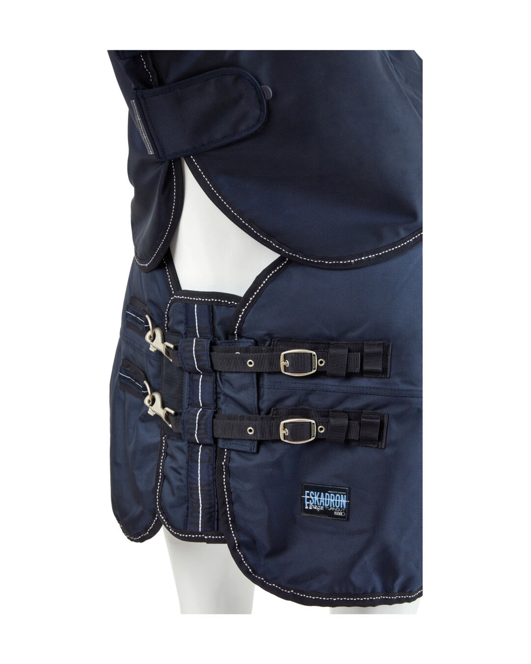 Die Weidedecke Omega 250 g von Eskadron ist das perfekte Produkt fĂŒr Pferde, die auch bei schlechtem Wetter drauĂen auf der Weide stehen.